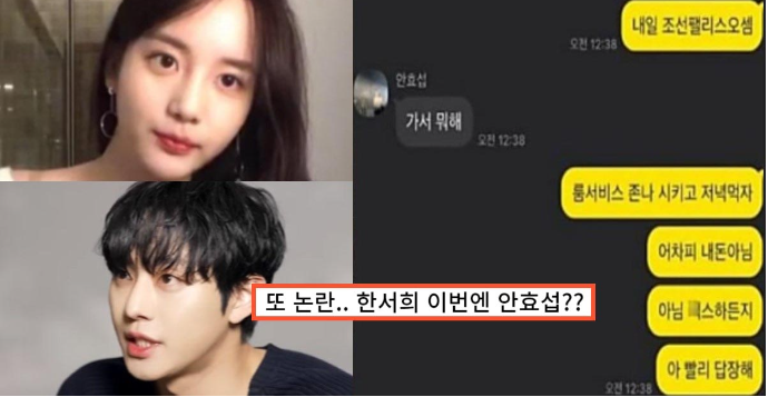 한서희.. 이번엔 배우 안효섭에게 "호텔 와" 카톡 내용 공개.. 논란 일자 "자작극"??