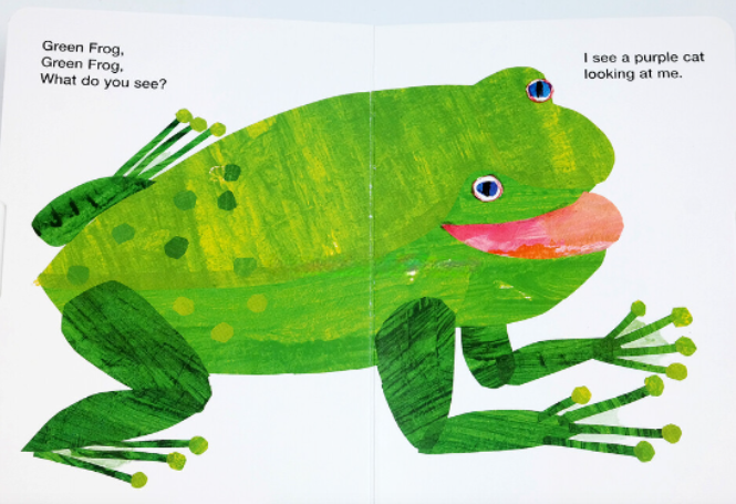 예를 들면, Green Frog, Green Frog, What do you see? 라고 물으면, I see a purple cat looking at me. 이런식으로요.