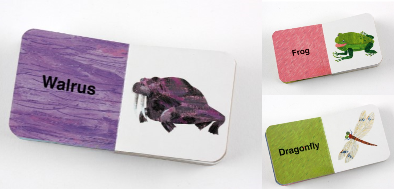 에릭 칼의 감각적인 그림과 함께 단어를 익히며 작고 귀여운 미니 보드북 9개를 장난감처럼 가지고 놀 수도 있습니다.