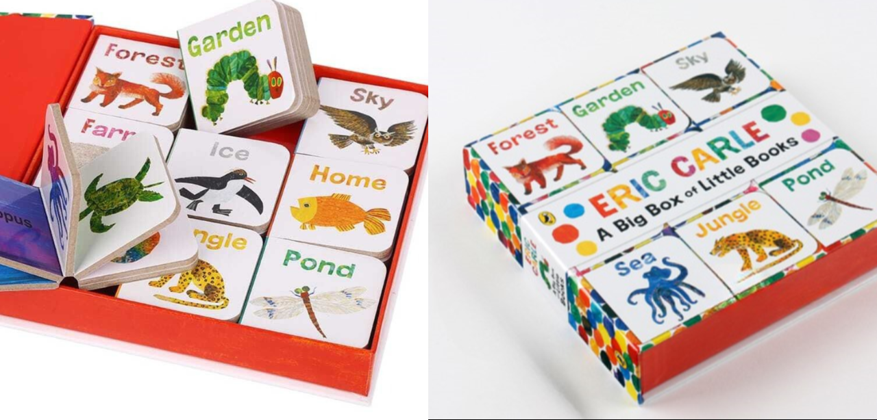 The World of Eric Carle: Big Box of Little Books 미니 보드북 9종 지금 소개하고 있는 <The World of Eric Carle: Big Box of Little Books 미니 보드북 9종>는 흔히 영어 입문서로 많이 사용하는 <배고픈 애벌레(The Very Hungry Caterpillar)>보다 더 어린 아기들를 위한 보드북입니다.
